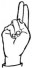 На ћирилици написано РАДОВАН КУШИЋ састоји се из 12 слова [?]. Исписано ћириличном једноручном азбуком за глувонеме: